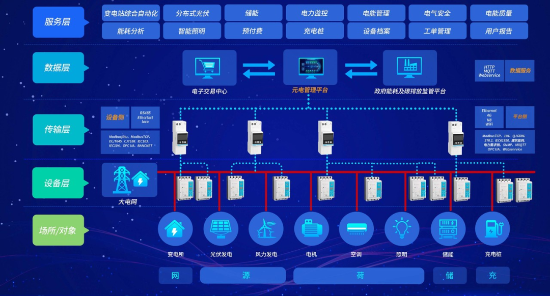 平台应用层:自研基于云计算与AI算法的能源管理平台——“智电云”,实现数据可视化、远程控制及智能决策。